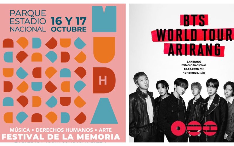 El Festival MUDA: Festival de la Memoria se realizará los próximos 16 y 17 de octubre en el Parque Estadio Nacional, en Ñuñoa, coincidiendo en fecha y recinto con los conciertos que la banda de K-Pop BTS, tendrá en el Coliseo Central del recinto deportivo.