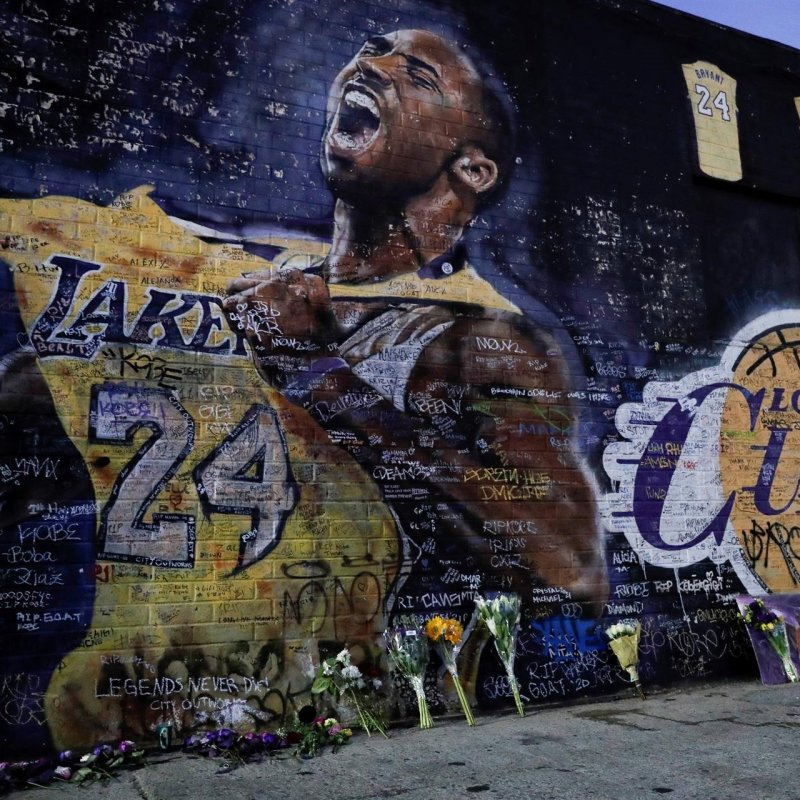 En la obra aparece la figura del exbasquetbolista, con la camiseta de los Lakers, junto a su hija Gigi, que lleva un balón de baloncesto.