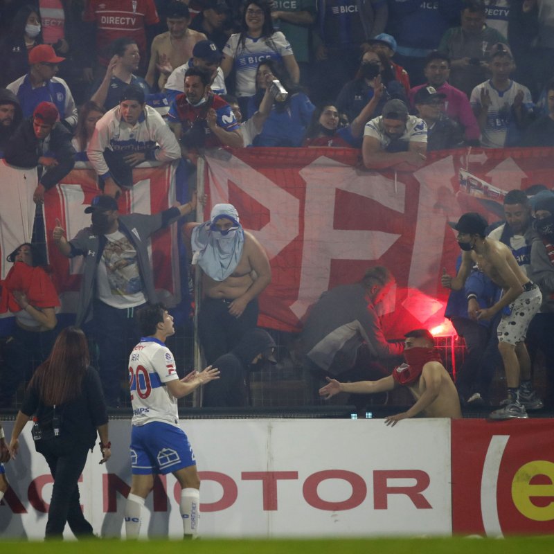 El partido fue suspendido en los últimos minutos del duelo debido a que hubo incidentes con fuegos artificiales por parte de la hinchada Cruzada en la tribuna Mario Lepe.
