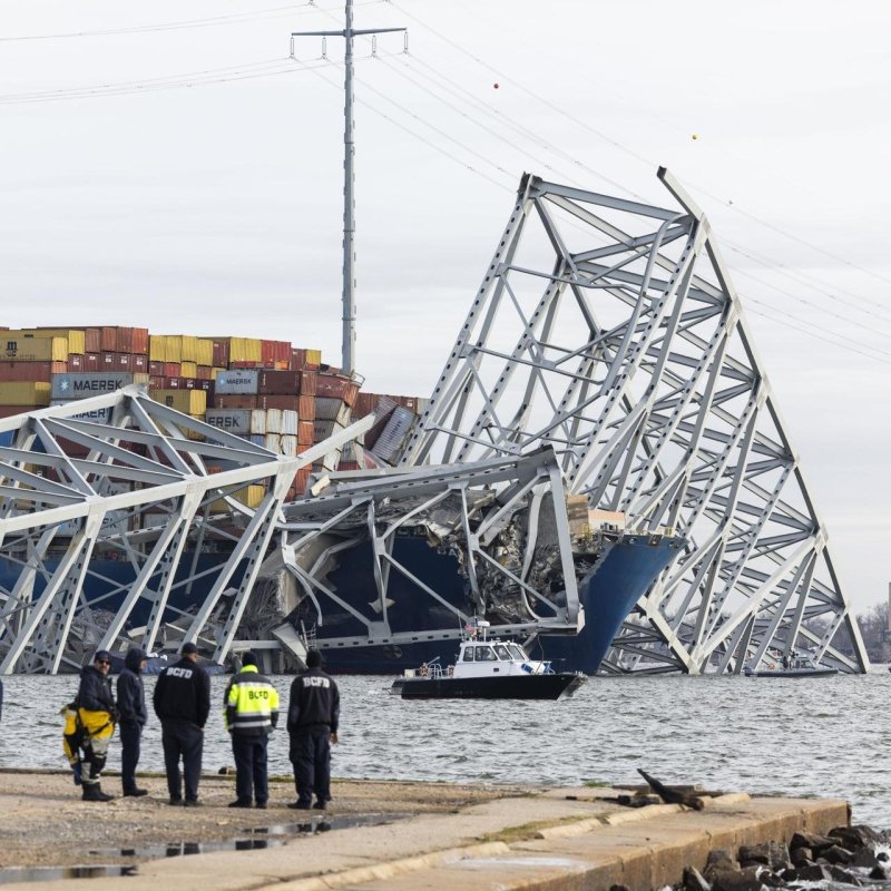 El carguero, de nombre Dali, se incendió tras la colisión, según fuentes de los bomberos y la policía.