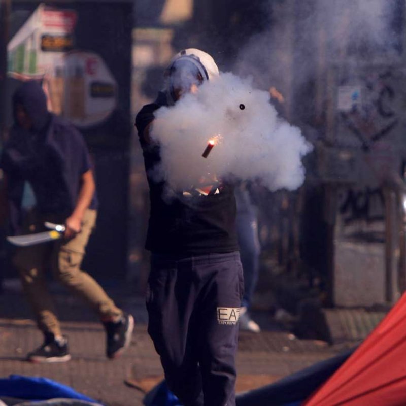 Los hechos se produjeron en una manifestación alternativa a la realizada por la CUT. En el sector se registraron enfrentamientos con Carabineros, los que fueron atacados con palos, piedras y barricadas.