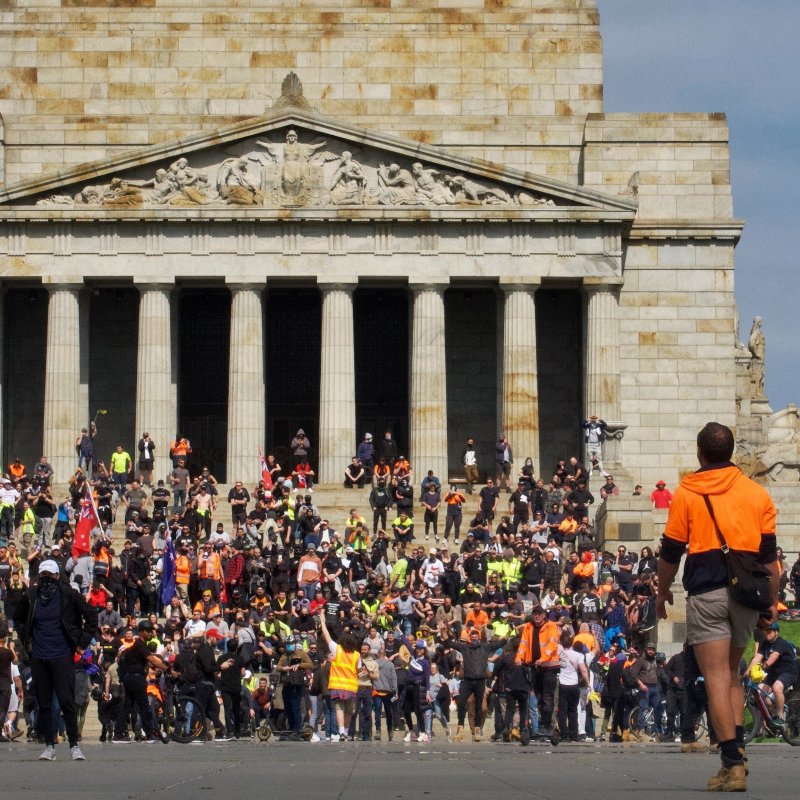 Las marchas estaban convocadas por sindicatos de trabajadores de la construcción por la obligatoriedad de estar vacunado para acceder a un puesto de trabajo en la industria.